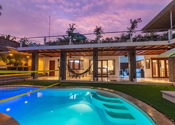 Die Luxury 5Br Villa With Private Pool & Rooftop Lounge hat eine komplette Küche mit einem Kühlschrank und einem Herd. Gäste können im Restaurant SD Street Cafe speisen, das lediglich 1 Kilometer von hier entfernt ist. Diese 7-Zimmer-Villa ist in unmittelbarer Nähe von der Bushaltestelle Halte Seminyak. Gästen stehen in dieser Unterkunft in Seminyak Fahrradverleih und Auto-Verleih zur Miete. Es gibt zudem Möglichkeiten zum Tischtennis, Fahrradfahren und Darts.